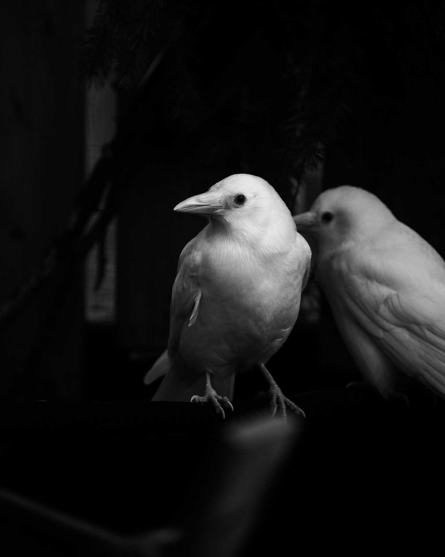 Two albino crows from the MARS Wildlife rescue centre in Comox Valley. I still think about them—they became characters in a short story I am writing. Another example of living life and letting the idea come to you.
